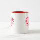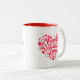 This ceramic coffee mug is shown with a Valentine greeting hearts print.