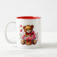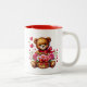 This ceramic coffee mug is shown with a cute Valentine teddy bear hearts print.