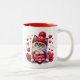This ceramic coffee mug is shown with a cute Valentine kitten love greeting hearts print.