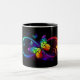 Taza Bicolor Vibrant infinity with rainbow butterfly on black