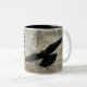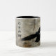 El cuervo vuela sobre un fondo vintage con la palabra crow sobre una taza fresca.