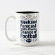 This design features clean, bold text that reads 'Weekend Forecast: 100% Chance of Football' with a simple football icon and tiny rain clouds. Perfect for NFL fans who build their entire weekend around game day.