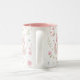 Whimsical Bunny Teapot Floral Spring Two-Tone Coffee Mug. This design features a delightful whimsical bunny nestled within a pink teapot, surrounded by spring blossoms and green foliage. This floral pattern brings a touch of spring magic to your everyday sips. Perfect for tea, coffee, or hot cocoa, it makes a delightful gift for Easter, Mother's Day, birthdays, or any occasion for a bunny lover.