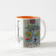 Taza de café personalizada de 444ml. ¡En cuanto a tamaño sólo puedo decir que enorme! pero es lo que esperaba así que estupendo. En el asa me entra la mano entera y no sólo tres dedos como me ocurría con las otras tazas. También comentar que es el tamaño que se ve en las series americanas, tanto para café como para infusión. En cuanto al acabado decir que es correcto, con poco tiempo de uso no puedo especificar mucho más. Pude escoger el nombre y el color pero no la tipografía, quizás esa elección pueda decidir a más gente. En términos generales y por el momento, buena opinión.