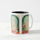 Taza Bicolor Whimsical Floral Meadow Cat Art