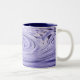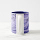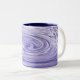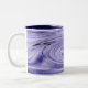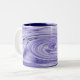 Esta taza presenta un diseño abstracto giratorio en tonos azules y púrpura que se mueve de izquierda a derecha. El patrón se parece a un jacuzzi.