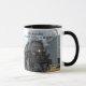 Con vapor, humo y un cielo blanco mientras se va . Es un Mug.