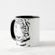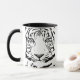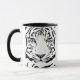 Fantasic abstract black and white illustration of a Bengal Tiger head on a clean white background with black handle and interior to match the drawing. You can choosee your own mug design and size.