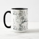 Black Line Art Cute Rabbit and Flower Mug