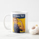 Taza blanca clásica con un poster del vintage de Rosie el remachador modificado por theLiberalShop.com que promueve problemas de la unión y del trabajo.