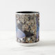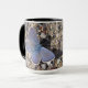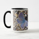 Die Grossaufnahme eines blauen Schmetterlings (Bläulings) auf grauen Steinchen ist das Design dieser Tasse, hier mit schwarzem Henkel und Rand. Die Grösse der Tasse und die Für Henkel, Rand und Innenseite sind wählbar.