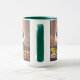 This mug features a Blessings Robot Thanksgiving Dinner. The mug is a Combo Mug that has a Hunter Green handle and interior. The word Blessings is on the image in metallic gold text. The cute Blessing Robot Thanksgiving Dinner image is on both sides of the mug. The mug meets the FDA requirements for food and beverage safety. The mug is microwave and dishwasher safe.