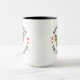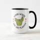 Una taza de café inspiradora con el dicho "Bloom donde estás plantado". Está decorado con cactus y corazones.