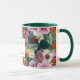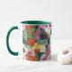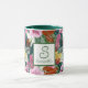 Sip en estilo con nuestro retro tazón floral monogramado inspirado en la selva tropical, con flores de gloria de la playa rosa de inspiración vintage, orquídeas, hibiscos y bromelias. Diseñado por Jo Story de Sketchbook Designs, es un delicioso regalo para los amantes de las flores tropicales. ¡Añade un toque elegante a tus mañanas!