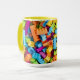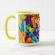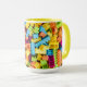 Este diseño presenta un collage de varios bloques de construcción de juguetes de plástico de neón.