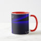 Enjoy your next cup of hot chocolate in this special coffee mug. This geometric beauty features a trendy blue accented clover leaf design and custom text.