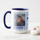 Los tonos de azul suave en un estilo de argyle o diamante crean un divertido tazón de dos fotos para mamá con texto completamente personalizable.