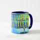 "Paz, amor y luz". Un ilustracion fotográfico de primera mano de una menorah artística brillante, colorida, azul y verde te ayuda a inaugurar las vacaciones de Hanukkah con estilo. Sienta el calor y la alegría de la temporada de vacaciones cada vez que bebes de esta impresionante y colorida taza de café Hanukkah. Hace un sorprendente conjunto de cuatro tazas cuando se compra con las tres versiones coloreadas alternativas disponibles en mi tienda. Y las tarjetas, pegatinas, almohadas, productos para el hogar, totebags y otros productos a juego están disponibles en mi colección de tiendas "Hanukkah Colorful, Artsy Menorah". Pide esto como un regalo para el hogar para alguien especial, ¡o incluso para ti mismo! Puedes personalizar fácilmente esta taza. Por favor, envíame cualquier pregunta o petición.