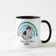 Aquí hay una taza linda para el mejor gato que mamá. Una imagen adorable de un gato gris y blanco en forma de tabby se sienta frente a un arco iris de estilo boho azul y dorado. En la parte inferior hay un texto negro que dice "Mejor Madre Gato ALGUNA VEZ". La imagen se imprime dos veces en la taza, con su nombre en negro en la parte superior entre ellos. *Si deseas un color de gato diferente en esta taza, ¡asegúrate de visitar nuestra tienda!