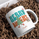 Tipografía retro groovy personalizable guión tazón café. El diseño presenta el texto "Merry Bright" en tipografía de color azul y marrón con elementos de temática kawai como árbol de Navidad, santa colorida y estrellas. El nombre se puede personalizar fácilmente. Hace el mejor regalo personalizado para usted, sus amigos, familiares e incluso vecinos. Tenemos más de 45 diseños de Navidades más en retro, acuarela y divertidos temas basados en tipografía en nuestra colección que definitivamente te encantará. Feliz Navidad!