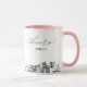 Boda de Tucson taza de café. El diseño muestra un impresionante skyline con la posibilidad de personalizar con tu nombre o los nombres de las damas de honor, invitados u otros. Actualice fácilmente el tamaño y el color de la taza a su gusto.