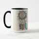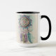 Un moderno diseño estético tribal de dreamcatcher mandala pintado a mano, con una elegante flor dibujada a mano, plumas y flores. La obra de arte está pintada con efectos de manchas acuáticas, lo que le confiere un aspecto artesanal único. Este diseño azteca y tradicional de dreamcatcher es bonito, soñador y mágico, lo que lo hace perfecto para ocasiones especiales y celebraciones.