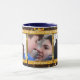 Mug personalizada con 3 de tus fotos favoritas enmarcadas por un diseño de luces de bokeh doradas y brillantes. Hermosa como primera Navidad juntos, aguanta o sólo porque.