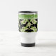 Una taza antigotas bonita del viaje a personalizar, con un modelo del estilo de Nouveau del arte de Lirio-de- Valley en un fondo negro; "para el amor de la colección elegante y Painterly de los lirios".