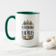 Enjoy your morning cocoa with this playful holiday mug featuring decorative baubles above the text "BOOKMARKS" and a book-and-holly flourish below. Perfect for bibliophiles and festive readers.