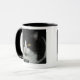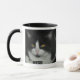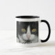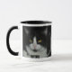 Taza blanco y negro del gato con el borde y la manija negros.