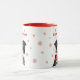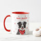 Taza de Navidad Border Collie Pañuelo de Corazón Rojo. Comienza tu mañana alegre y brillante con esta taza festiva de Border Collie. El regalo perfecto de Navidad para mamás y papás de perros, cuenta con un perro feliz que lleva una bufanda roja rodeado de copos de nieve. Agrega tu propio nombre o mensaje de vacaciones para un toque personalizado.
