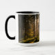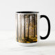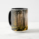 Esta foto muestra rayos de sol de la mañana que sale a través de un bosque nublado de caída en la Suiza sajona en el este de Alemania.