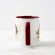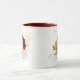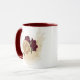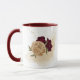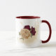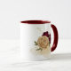 Hermosa taza de café con flores granate y beige dorado con hojas verdes .