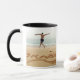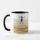 DERECHOS DE AUTOR Stephanie Rabemiafara / DanitaDelimont.com| AF36 SRA0000.jpg| BRASIL. Hombre barechest usando un traje de baño saltando sobre la arena por el nombre que Brasil escribió en la arena, saltando hacia el mar