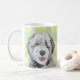 Este labradoodle del dulce ama el tenis que persigue pelotas de tenis.