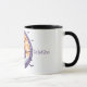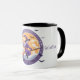 Este personalizable de diseño de tazas con la temática "Halloween" presenta una adorable bruja volando sobre su palo de escoba con un texto que usted puede personalizar.