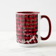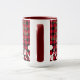 Esta taza de Navidades festiva tiene una sorprendente cabeza geométrica de reno, situada en un escenario clásico de manchas de búfalo rojas. Los copos de nieve y las minimalistas siluetas de montaña añaden un toque de magia de invierno, mientras que el audaz saludo "Feliz Navidad" de un lado captura el alegre espíritu de la temporada. El lado opuesto ofrece un mensaje de personalizable, haciendo de esta taza el regalo personalizado perfecto para amigos o familia. Ya sea que esté tomando el cacao caliente junto al fuego o tomando un café por la mañana, esta taza le da un encanto rústico y acogedor con un toque contemporáneo a sus momentos de vacaciones.