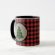 El fondo de esta taza festiva es un patrón de manto de búfalo rojo y negro. En el centro, a cada lado, hay un cartel de un círculo color marrón con una imagen de árbol de Navidad a juego de manchas verdes y negras. Colorido! Asegúrese de ver los productos que coinciden en nuestra tienda.