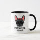 Trate a ti mismo o a alguien que conozcas que es una madre bulldog francesa a esta linda taza de café de mamá francesa. Con una cara de bulldog francesa de color negro en un estilo moderno de personalizado, esta taza de café es un regalo excelente para las nuevas y ya orgullosas mamás francesas.