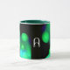TAZA BURBUJAS FRACTALES VERDES AZULES NEGRAS MONOGRAMA