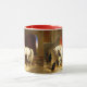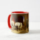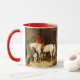 TAZA CABALLO BLANCO CON PERROS Y FALCONS EN ESTABLE