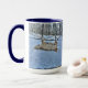 Taza Caballo blanco rodando en nieve de invierno