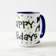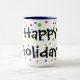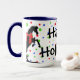 Dos siluetas de caballo con arcos rojos sobre un punto de polka y fondo blanco con la palabra "Felices Fiestas". Personalizar con tu saludo de vacaciones personal. ¡El regalo perfecto para tu amante de los caballos!