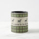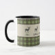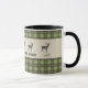 Saboree el café de la mañana en su casa rústica o en su cabina de vacaciones con esta taza de diseño verde y gris. Verde y gris, con toques de azul claro y una silueta de ciervo. Edite el subtítulo de texto como desee y busque otros elementos de coordinación en esta colección de diseño en Camp_and_Cottage en Zazzle.com.