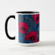Patrón vectorial dibujado a mano con flores rojas de amapola y flores azules