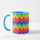 Un brillante patrón arcoiris decora esta divertida taza de café. El diseño es de arte original.