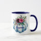 Una moderna " Calabaza matutina " en tipografía azul sobre una calabaza floral azul por un lado y una calabaza floral azul con una plantilla para que añadas un nombre en tipografía azul. Esto haría un maravilloso regalo personalizado de otoño.
