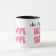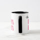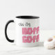 Una atractiva taza de ringer blanca con un labio negro y un mango y "me gusta el café" en galés. Las letras están llenas de un patrón de Red y White Check Gingham.