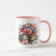 Un ilustracion acuático realmente bonito de una pila de libros antiguos, una taza de té o café y una taza de café con flores de bonito.