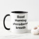 ¡Díganle sutilmente a los crustáceos de su vida que sean presentables antes de hacer una aparición! Si nunca has olido un pterodáctilo por la mañana... bueno, tampoco lo hemos hecho, pero no puede ser agradable. Y a veces todos necesitamos un recordatorio de que afectamos a los demás. Coffee mug presenta arte del 2 Cavemen Grill'in (el mayor camión de comida en SE Minnesota!). Fue hecho por el entonces niño de 13 años de uno de los soldados. Nos hemos enamorado de estos dos, hemos llamado Ooga (el pelo más gris) y Booga (el salmonete) y los hemos usado desde entonces.